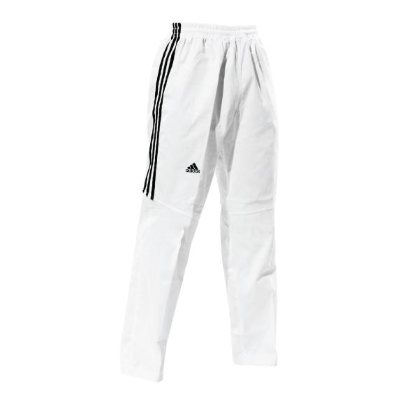 adidas ® trening hlačeUsredotočite se na udarce. Poseban uzorak ispod koljena na hlačama poboljšava kretanje nogu tijekom udaraca, dok u stvarnim borbama stvara bitnu razliku. Korištenje tankog uzorka umjesto trokutastog ispod genitalija čini se da se natjecatelj osjeća ugodno u ovoj uniformi.